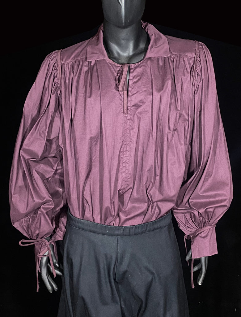 In a wide range of colors of 100% cotton. Pleated on a doubled yoke with a soft collar and wide cuff, trimmed with bias around the armhole; neck and cuff bias extends into ties.
