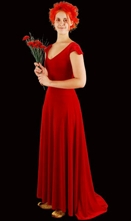 It has a small epaulet, deep-scooped back and train with finger loop, like its namesake. A blessing on hot faire days and many other occasions.
